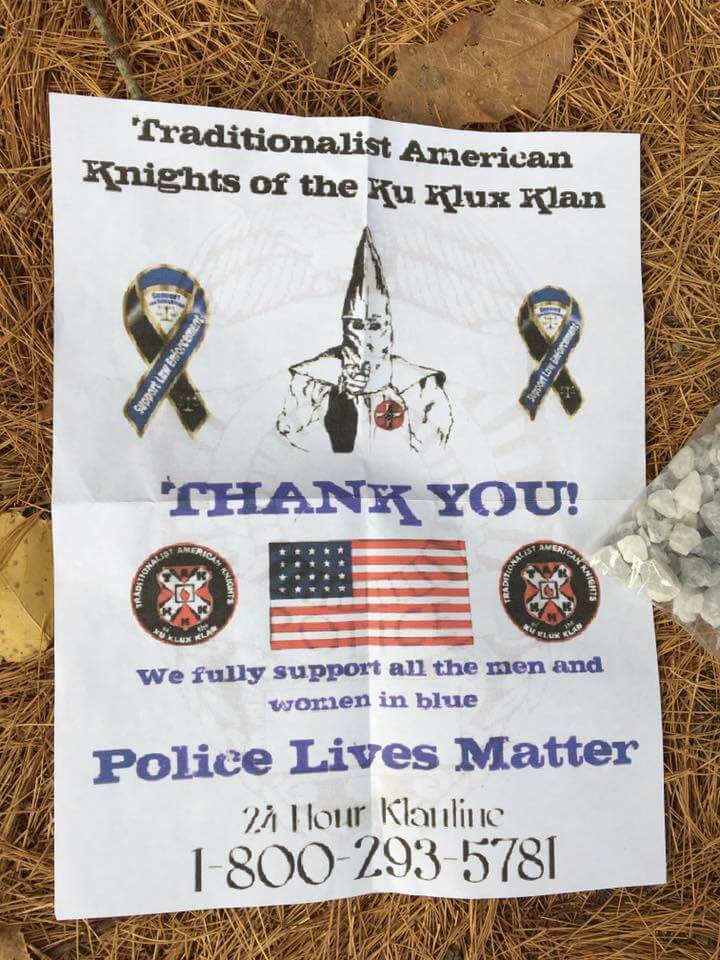 Yesterday, a Maine-based reader informed me that a friend had woken up to a flyer from the KKK in her driveway and was aghast. I can’t say that I would blame her; if I found a flyer from the KKK in my alley, I too would be pretty damn bothered. Between the time I received the notification and now as I write this, the story has made its way into the local news cycle. What is interesting is that the local news reports are reporting this as an isolated incident where my own sources are saying that others have informally come forward to say that they also received these flyers. But apparently it seems only one person went to the authorities.