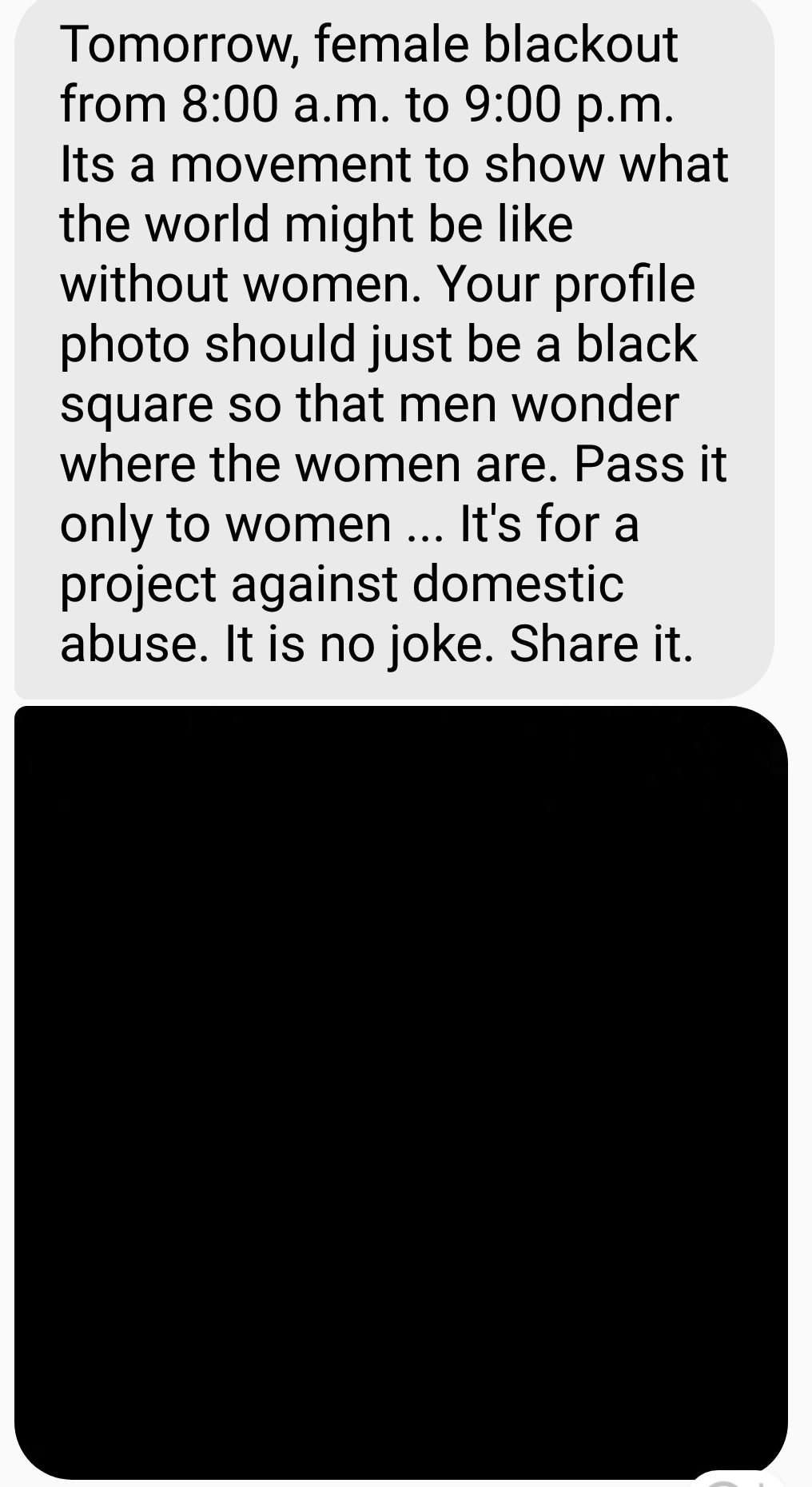 Over the weekend, my Facebook box was overflowing with multiple calls to participate in the female blackout on Sunday morning.